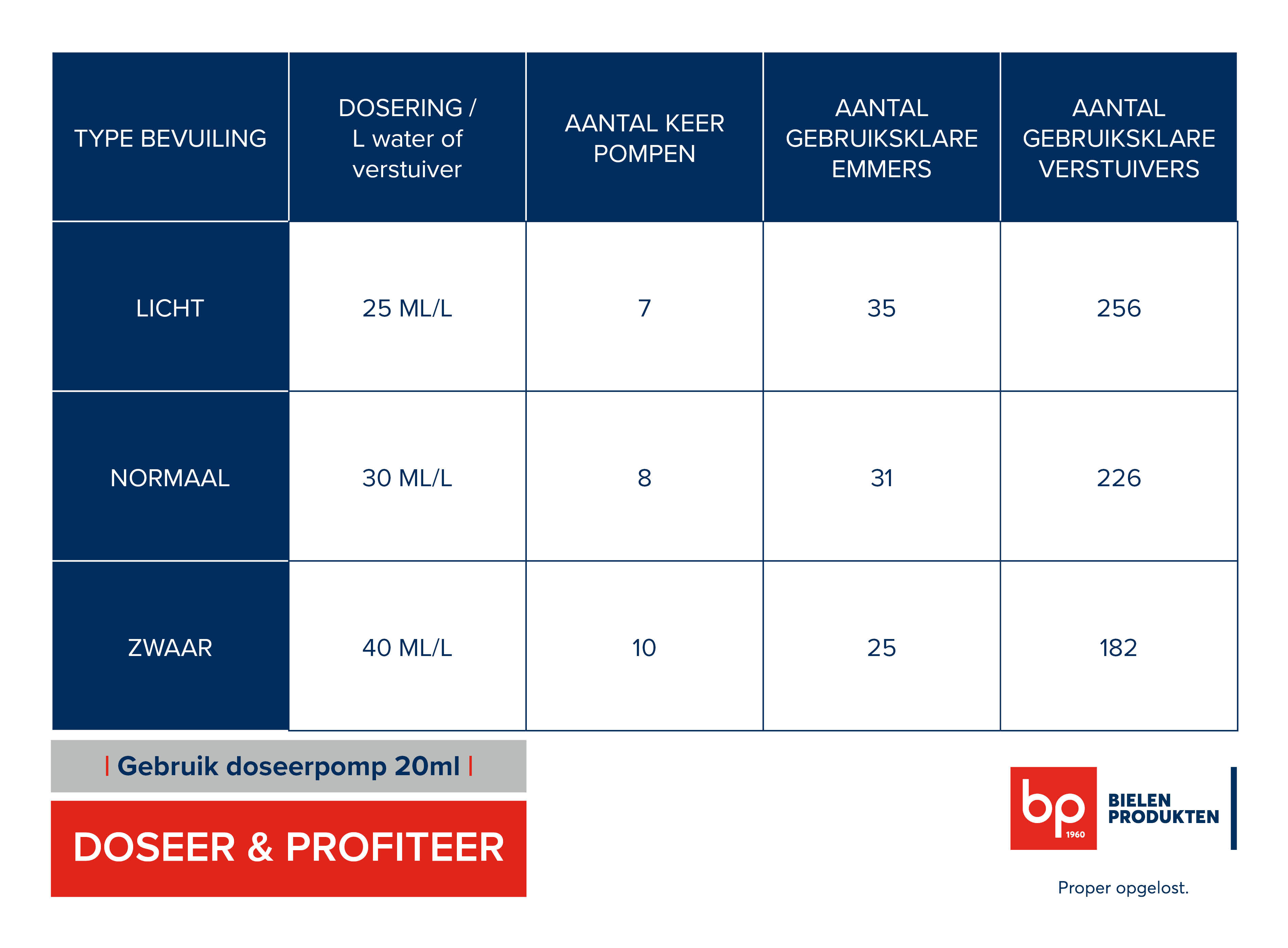 Bei durchschnittlicher Verschmutzung können aus 5 L BDR 5 63 gebrauchsfertige Eimer oder Sprühflaschen hergestellt werden.
