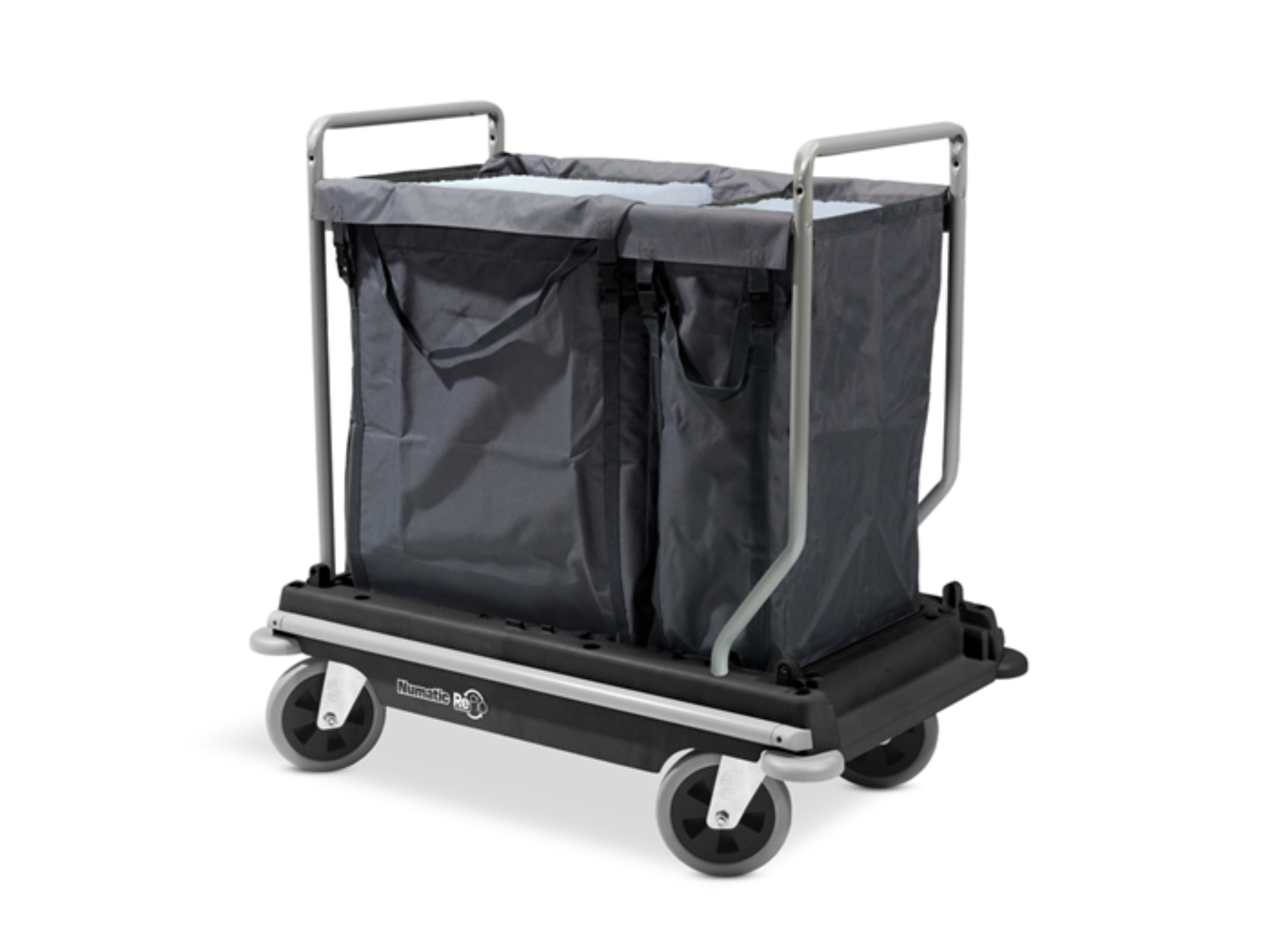 Een 300 liter wasverzamelwagen van Numatic. De NB3002 wordt geleverd met één 100 liter nylonzak en één 200 liter nylonzak. De 200mm zwenkwielen maken de NB3002 erg wendbaar en prettig te verrijden. Boven de zwenkwielen zorgen de stootbuffers voor de nodige bescherming.