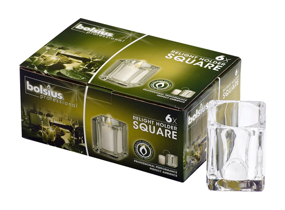 Relight houder vierkant glas transparant h90xø70mm 6st